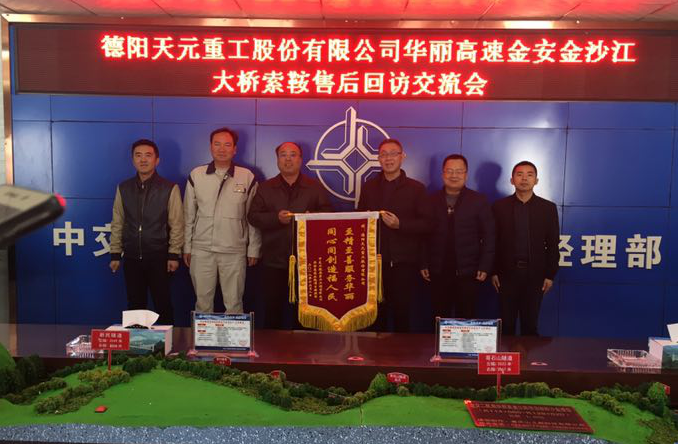 在本次售后回訪過程中,汪總一行受到了中交華麗高速公路第三項(xiàng)目經(jīng)理部有關(guān)領(lǐng)導(dǎo)的熱情接待,雙方就項(xiàng)目合作過程中的一些重要事項(xiàng)交換了看法,總結(jié)了經(jīng)驗(yàn)教訓(xùn),增進(jìn)了雙方的互信,為今后展開進(jìn)一步合作奠定了基礎(chǔ)。為了感謝天元重工在本次項(xiàng)目合作工作中給予的鼎力支持,中交華麗高速公路第三項(xiàng)目經(jīng)理部特別制作了錦旗贈(zèng)送給汪總一行,共同期盼“同心同創(chuàng)造福人民,至精至善服務(wù)華麗”。