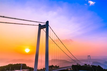江津中渡長(zhǎng)江大橋,全長(zhǎng)1738米,主橋橋型為懸索橋,...