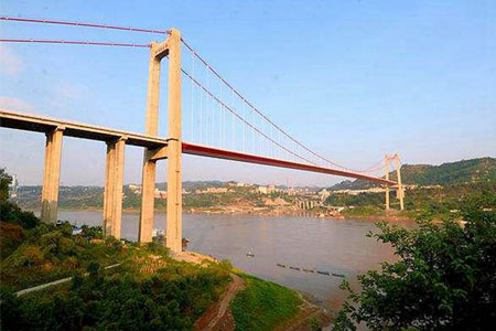 重慶青草背長(zhǎng)江大橋全長(zhǎng)1652米,主橋?yàn)閱慰?88米的懸索橋,位于涪陵區(qū)李渡長(zhǎng)江...