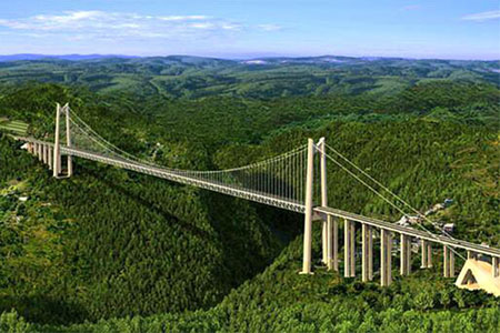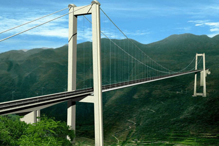 貴州抵母河特大橋主橋采用538m的單跨鋼桁梁懸索橋,主梁采用鋼桁加勁梁,寬27m...