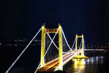 贛江公路大橋長1073米(含引橋),主橋采用的是先進(jìn)的雙塔單跨地錨式懸索橋設(shè)計,...