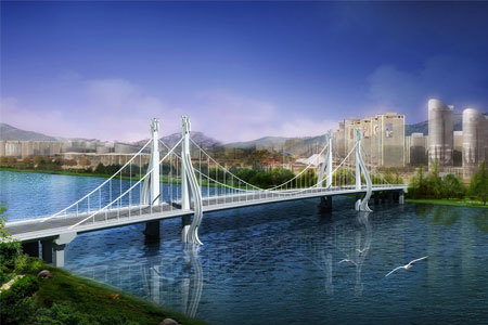 牡丹江市西十一條路跨江大橋工程,全橋長約1740米,主橋?yàn)樽藻^式懸索橋,南北引道...