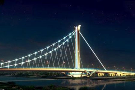 邵陽桂花大橋采用雙塔三跨自錨式懸索結(jié)構(gòu),主跨120米,全長541米,寬33.8米...