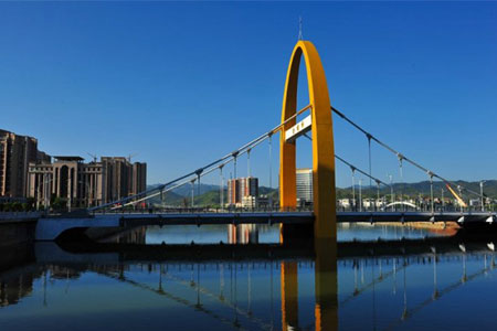 浙江江山北關(guān)大橋位于浙江省江山市區(qū)北關(guān)路口,全長(zhǎng)470米,主橋長(zhǎng)207米,主跨長(zhǎng)...