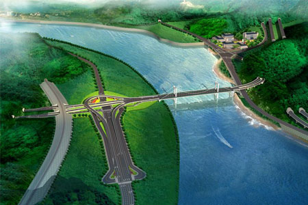 湘潭昭華大橋?yàn)楠?dú)塔自錨式懸索橋,長(zhǎng)1322米,主橋橋面寬39.5米,為雙向8車道...